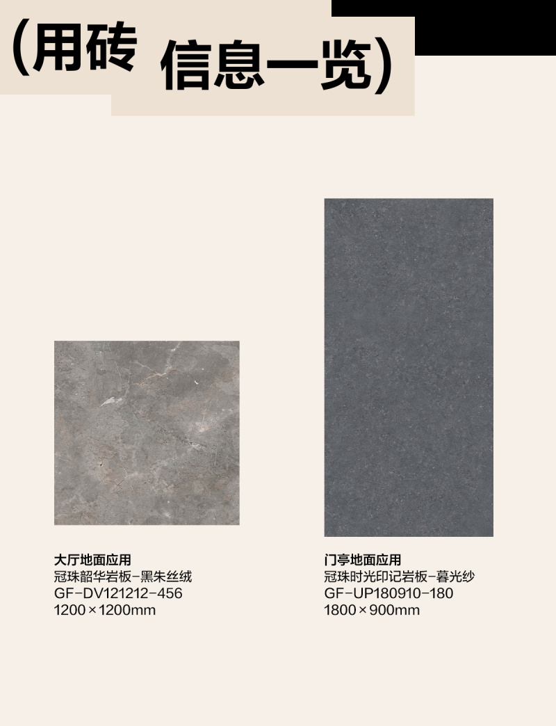 契合项目中式美学概念,门亭选用了冠珠时光印记系列岩板-暮光纱。通过国家专利技术加持,岩板表面呈现高清细微的凹凸纹脉以及柔滑温润的肌理,色调与光线互动,形成朦胧的复古光影效果,高级而文艺,颇具年代感。
