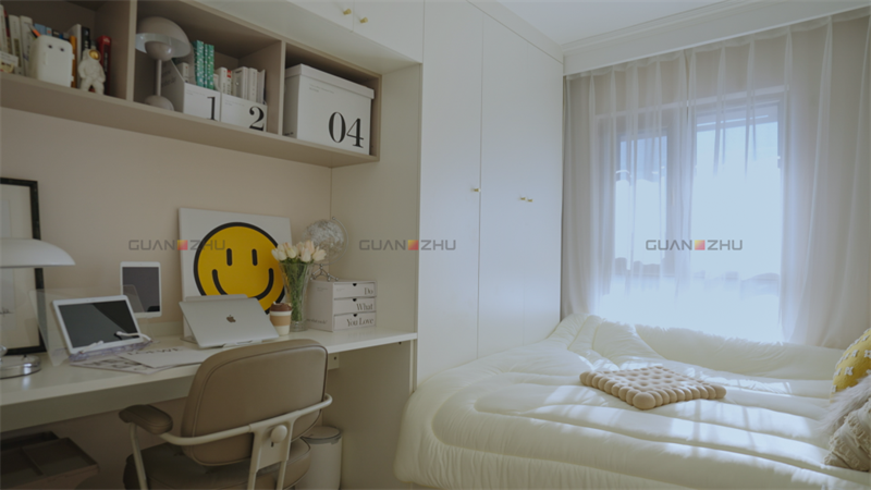 次卧做了榻榻米设计,这里既是客房,也是日常办公的安静小空间,可以放置很多使用不频繁的杂物。