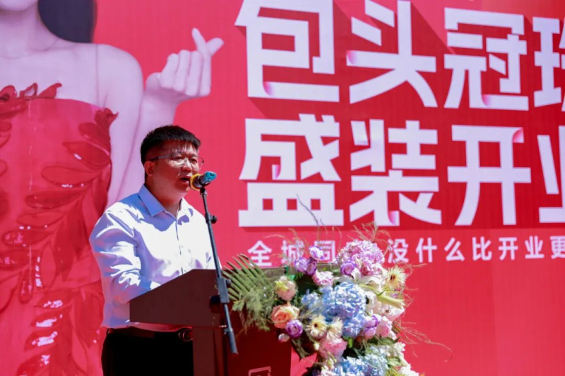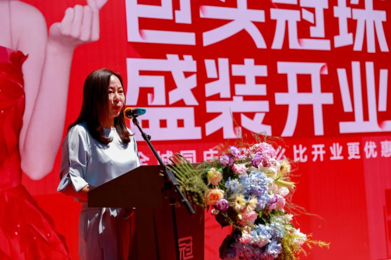内蒙古众尚置业有限公司总经理贾茹作开场致辞。她表示,包头冠珠瓷砖精品店的开业是冠珠瓷砖战略布局的重要一步。未来,她将继续以饱满的热情和专业的精神,用大美产品和专业的服务,为广大消费者提供更加优质的家居建材产品和服务。