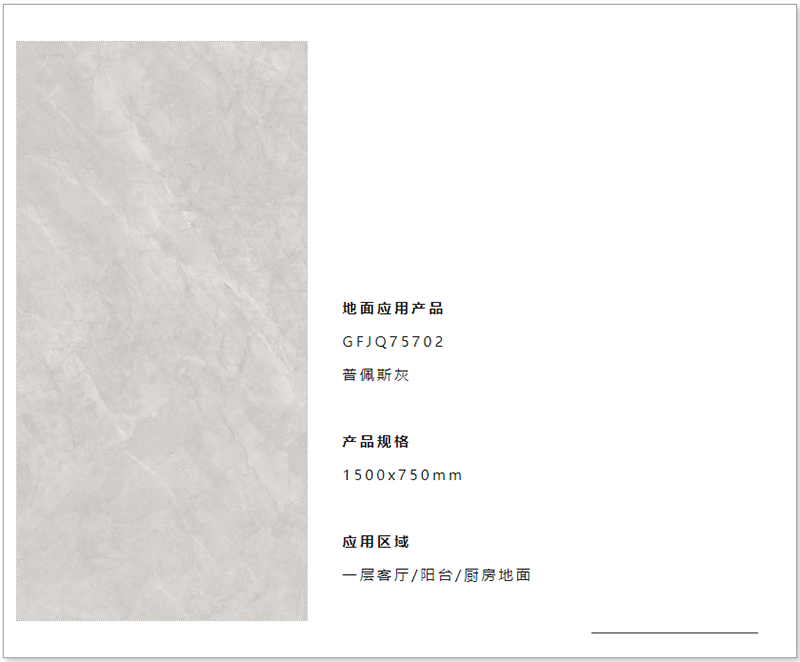 为实现这一效果,占据客厅最大面积的地砖选择很重要。屋主陈女士在客厅瓷砖上选用了1500x750mm黄金规格的冠珠普佩斯灰岩板,这款地砖在自然光线的映照下,容易呈现轻盈通透的质感,让客厅显得更加明亮敞阔。